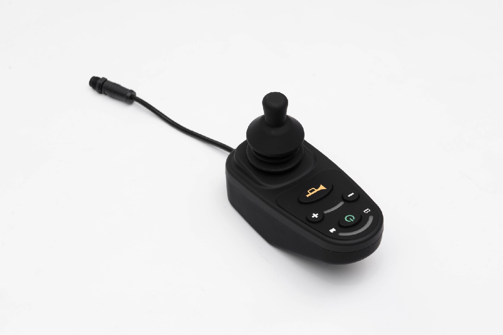 大燈款手柄控制器在基礎款上面增加前大燈功能,控制器通過串口與電機控制器通訊,可以根據客戶要求定制部分功能。產品符合ISO-7176-14 GB/T 18029.14相關要求。